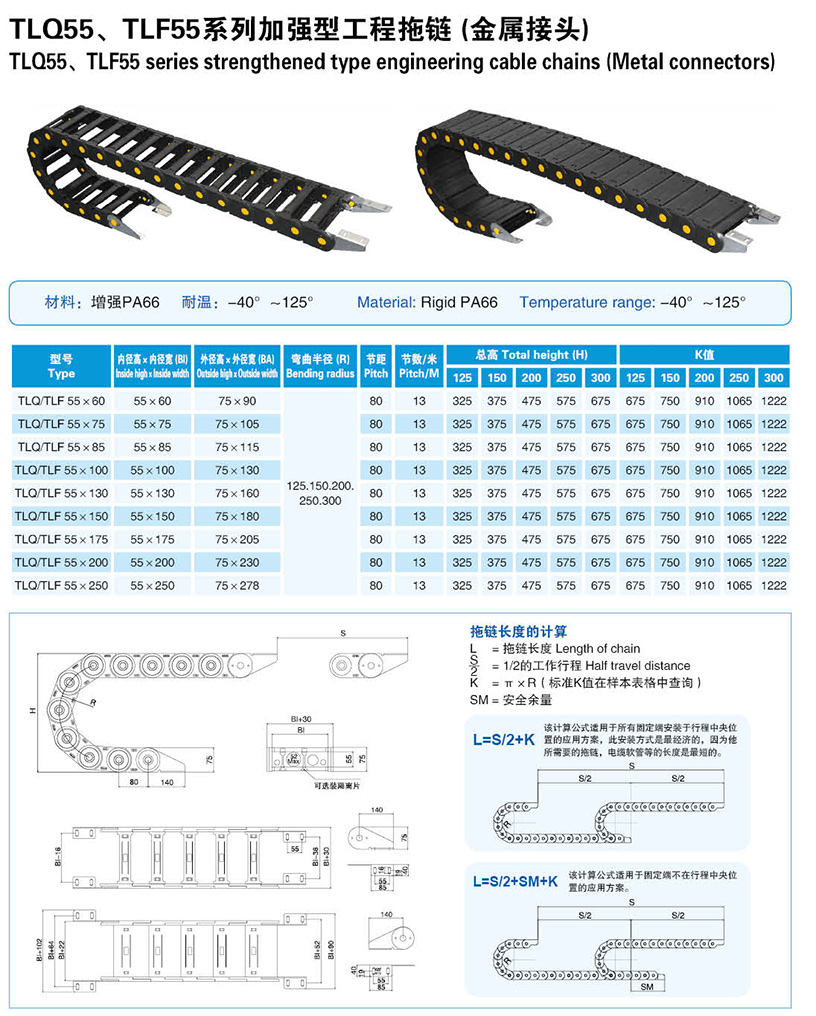 - 產品名稱: TLQ55、TLF55系列加強型工程拖鏈(金屬接頭)