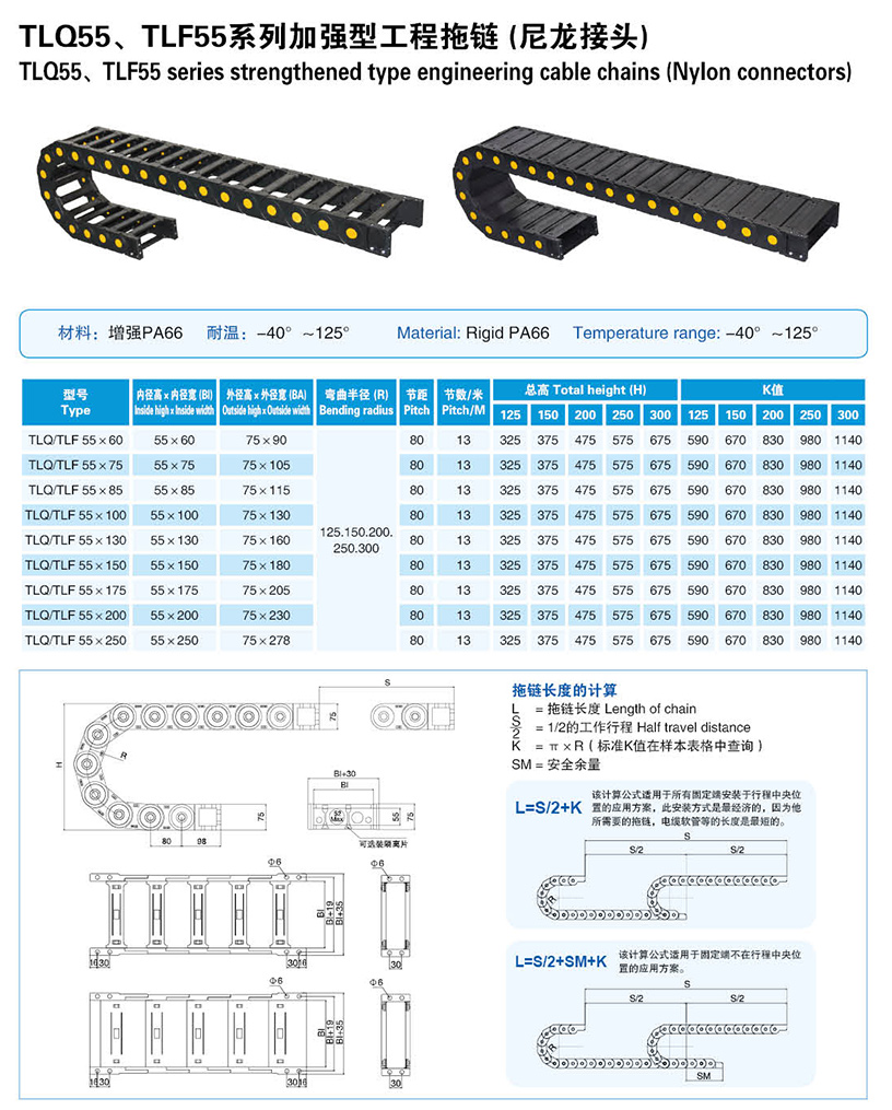 - 產品名稱: TLQ55、TLF55系列加強型工程拖鏈(尼龍接頭)