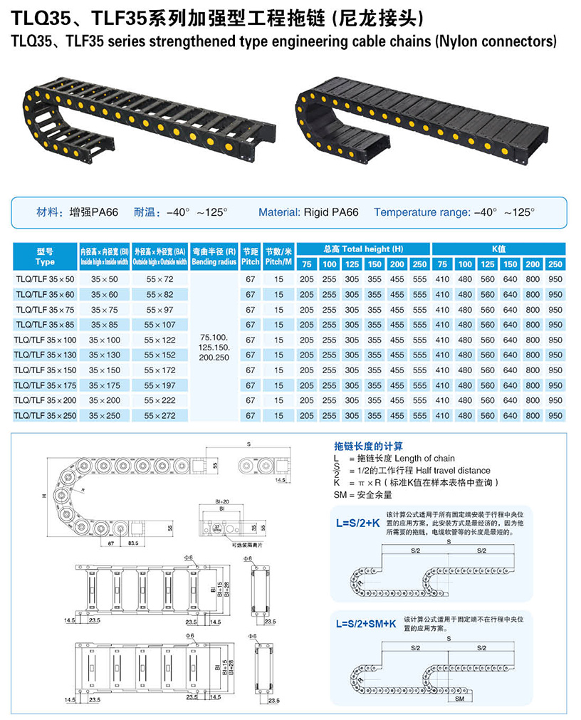 • 產品名稱: TLQ35、TLF35系列加強型工程拖鏈(尼龍接頭)