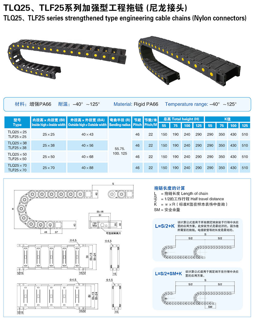 - 產品名稱: TLQ25、TLF25系列加強型工程拖鏈(尼龍接頭)
